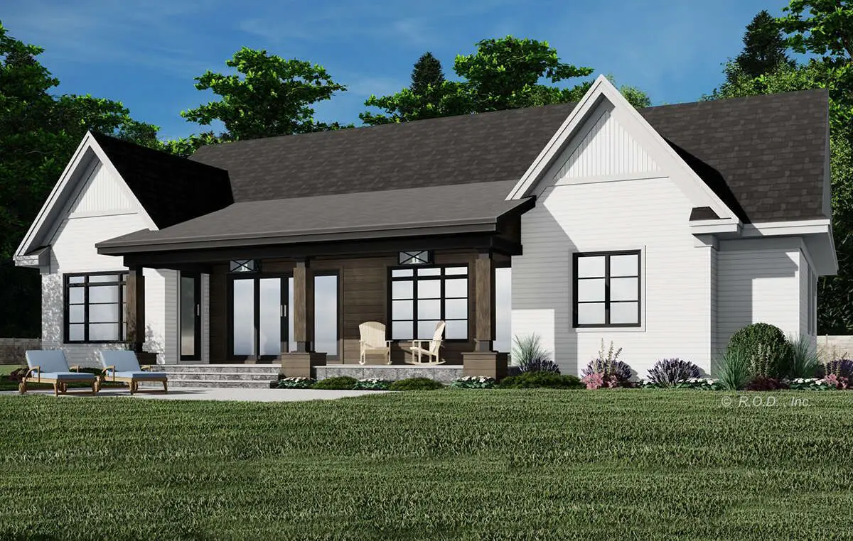 This modern farmhouse design thoughtfully combines **open shared living spaces, private bedroom retreats, and generous porch zones**, creating a layout that supports both everyday family life and entertaining. Its efficient flow, balanced proportions, and indoor-outdoor connections make it ideal for homeowners who value comfort, versatility, and enduring architectural appeal in a stylish and functional home.