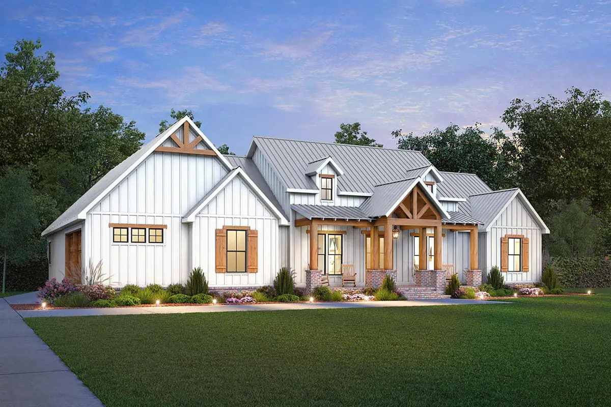 This modern farmhouse plan thoughtfully combines **open shared living areas, a vaulted primary suite, versatile secondary bedrooms, and generous porch spaces** to support both everyday family life and entertaining. Its balanced layout, smart organization, and classic farmhouse character make it an appealing choice for homeowners who value comfort, style, and lasting architectural appeal in a well-designed, practical home.
