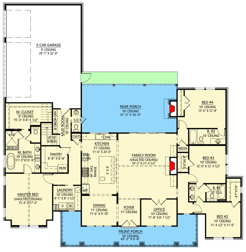 - Covered front and rear porch spaces that strengthen indoor-outdoor living.