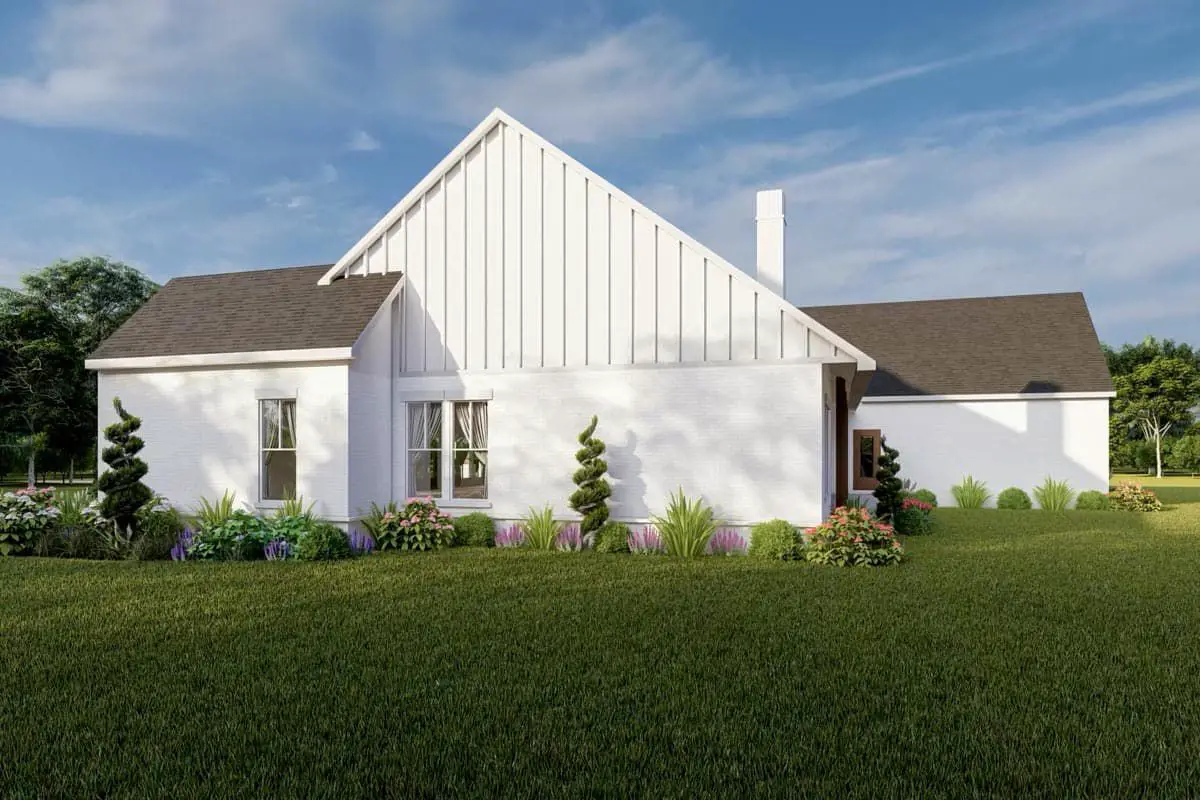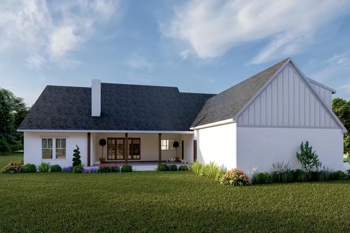 This modern farmhouse plan delivers approximately 2,841 sq ft of thoughtfully designed living space in a single-story layout that expertly balances open shared areas, private retreats, and lifestyle flexibility.