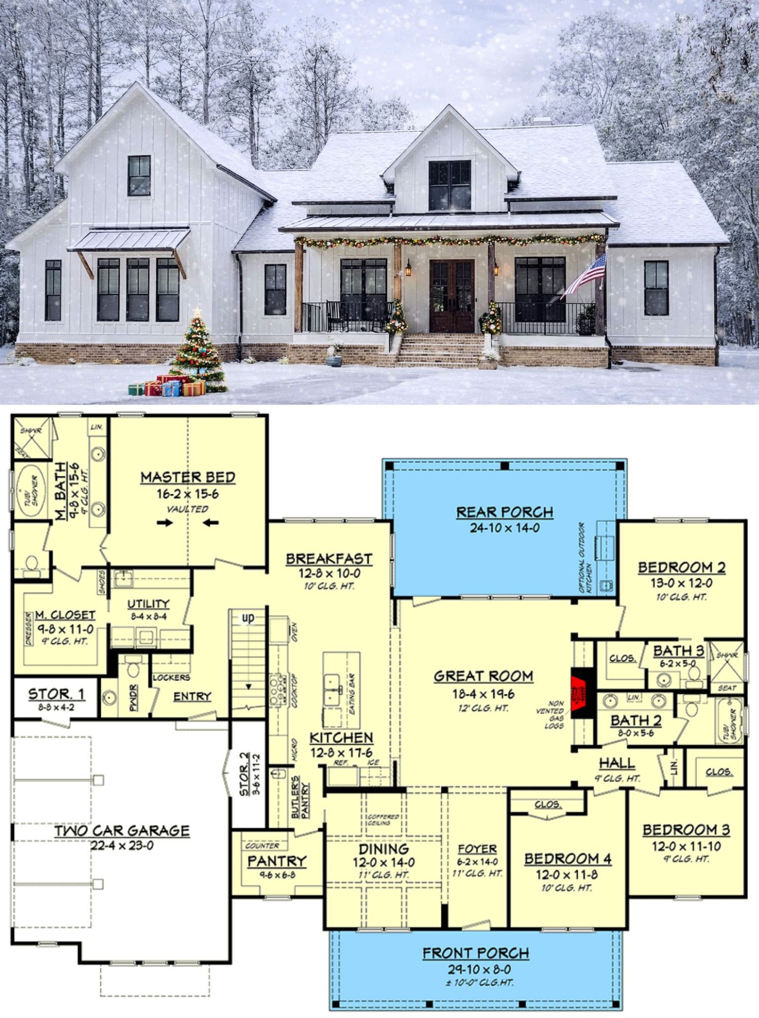 This modern farmhouse design offers approximately 2,742 square feet of well-planned living space, blending timeless farmhouse charm with modern functionality and flexibility.