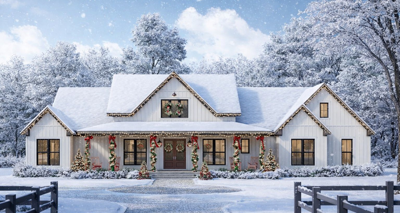 Typical U.S. residential construction costs in 2025 for a home of this size and modern farmhouse styling range from about $175 to $350 per square foot, influenced by region, materials, labor availability, finish quality, and site conditions. Based on that range, building this ~2,500 sq ft home could cost approximately $438,000 to $875,000 USD before land purchase, site preparation, permits, utilities, and landscaping.