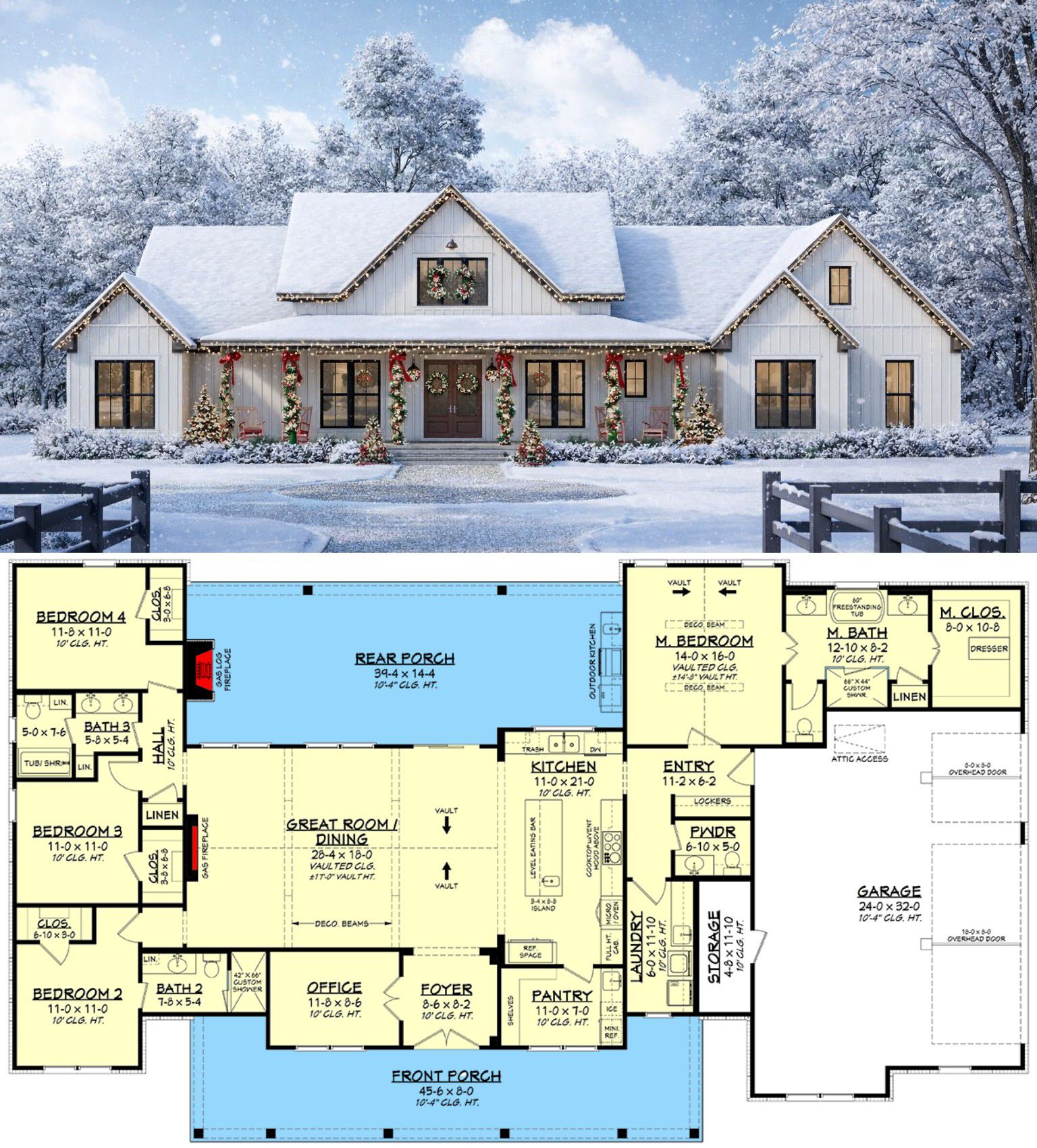- Expansive covered front porch and rear porch with outdoor kitchen and fireplace for indoor-outdoor living.
