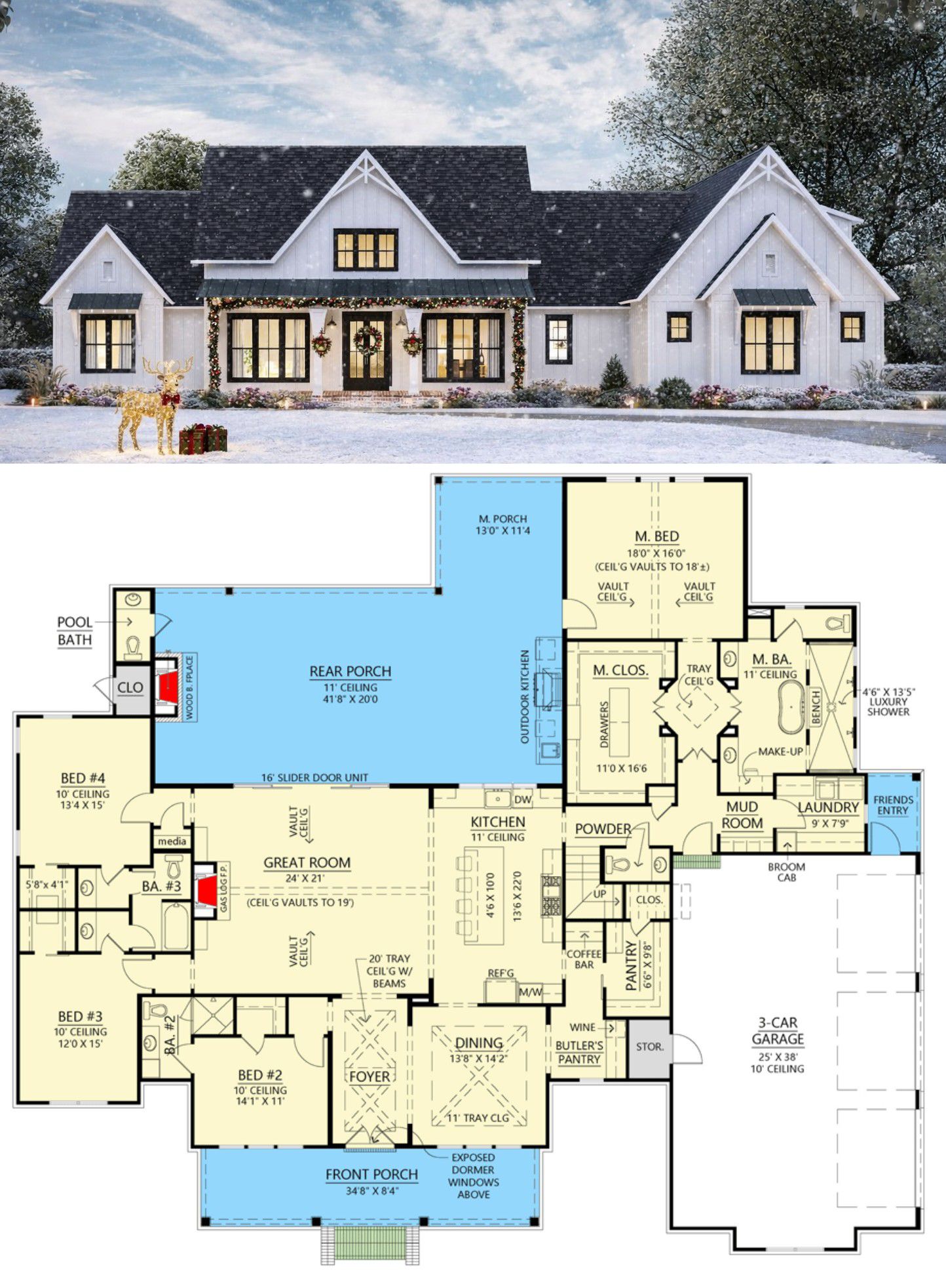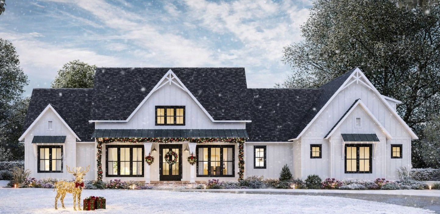 This split bedroom modern farmhouse thoughtfully blends **open shared living areas, private retreat zones, versatile bonus space, and outdoor living opportunities** into a well-balanced and functional layout. Its classic farmhouse silhouette, practical flow, and adaptable spaces make it ideal for families who value comfort, entertaining flexibility, and enduring architectural appeal in a home that supports both everyday living and future needs.
