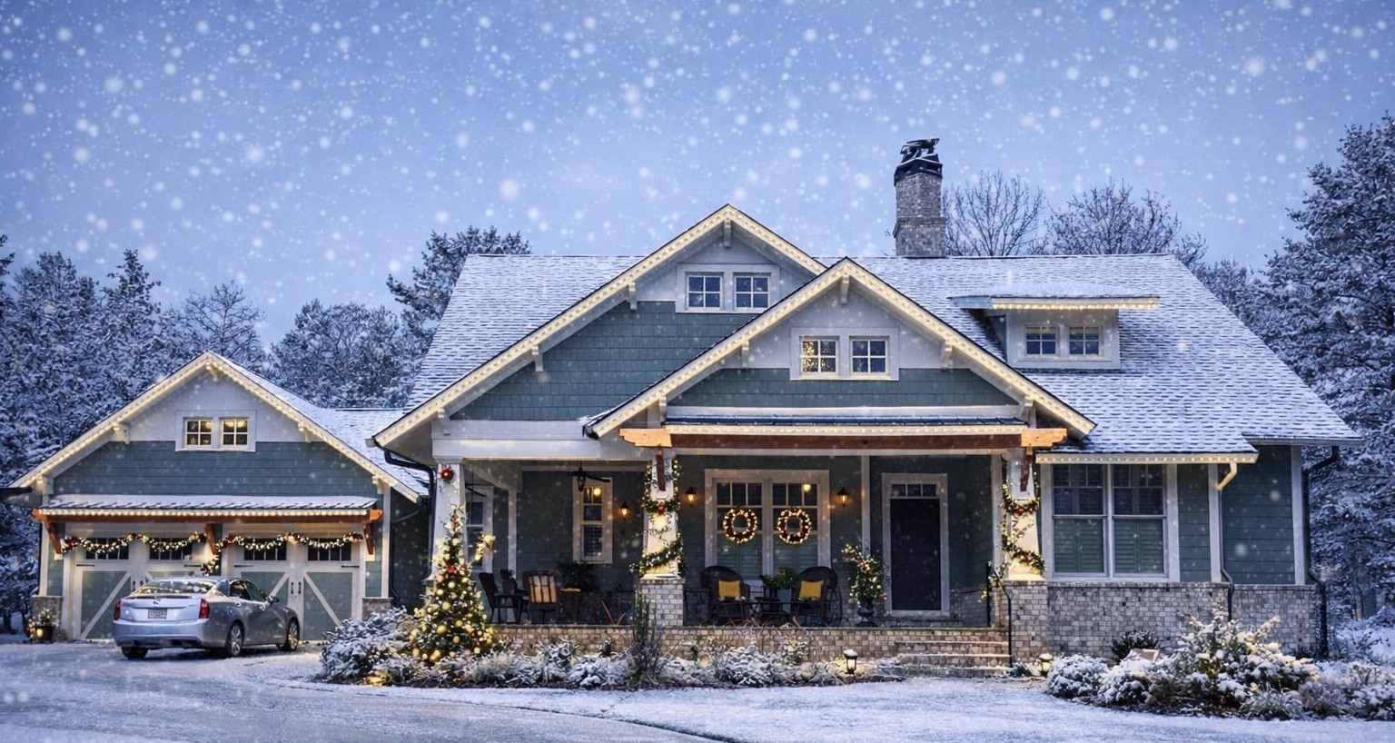 The exterior evokes classic country and Craftsman influences with its balanced rooflines, inviting covered front porch, and thoughtfully placed windows that bring proportion and light to the façade.
