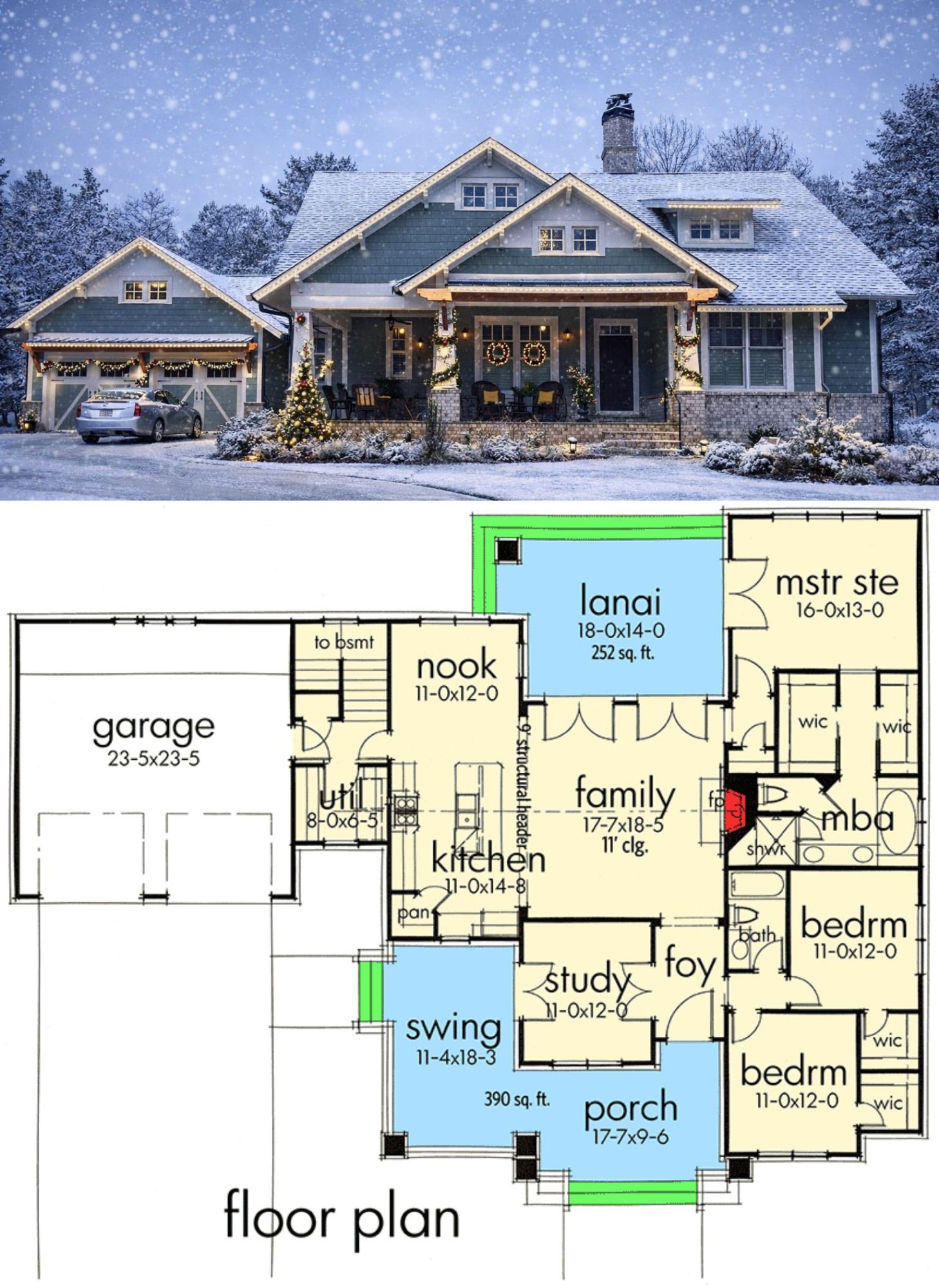 - Generous covered front porch with dedicated swing space and rear lanai that extend living outdoors.