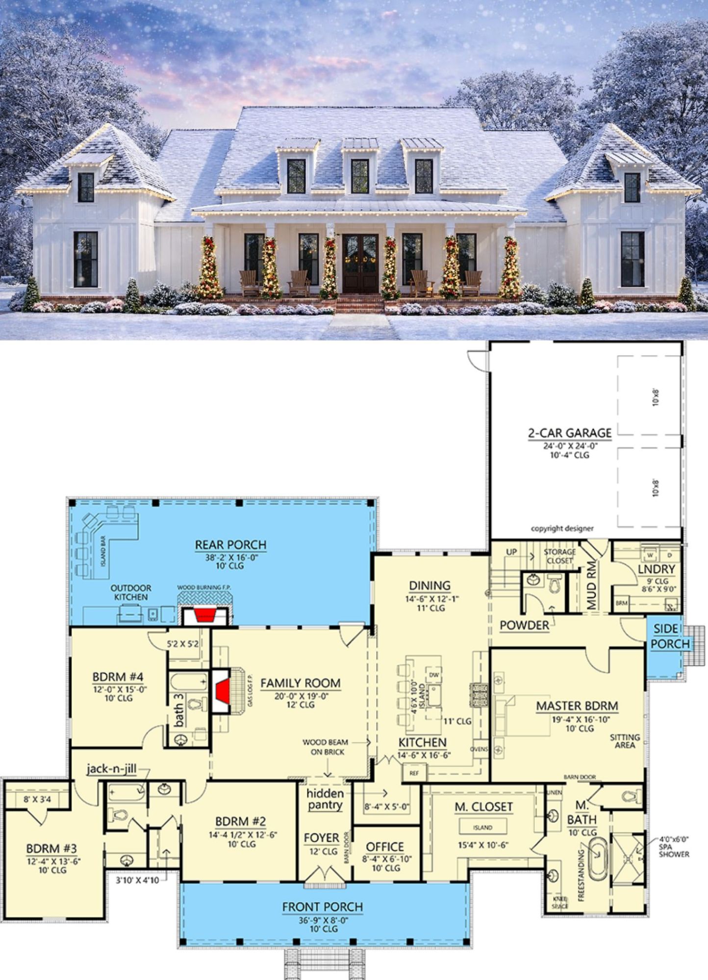 - Generous covered front and rear porch areas that extend living space outdoors.
