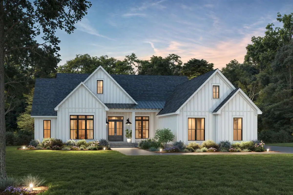 This modern farmhouse design thoughtfully balances **open shared living spaces, private bedroom retreats, and intentional outdoor living zones**. Its practical flow, balanced proportions, and versatile room arrangements make it well-suited for families and homeowners who appreciate everyday comfort, entertaining ease, and the blend of classic style with contemporary livability.