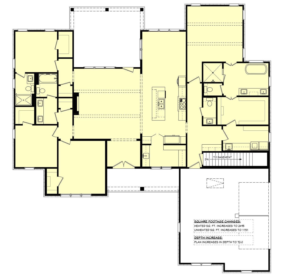This modern farmhouse plan delivers approximately 2,475 sq ft of thoughtful living space designed to support everyday family life, entertaining, and relaxed indoor-outdoor enjoyment.
