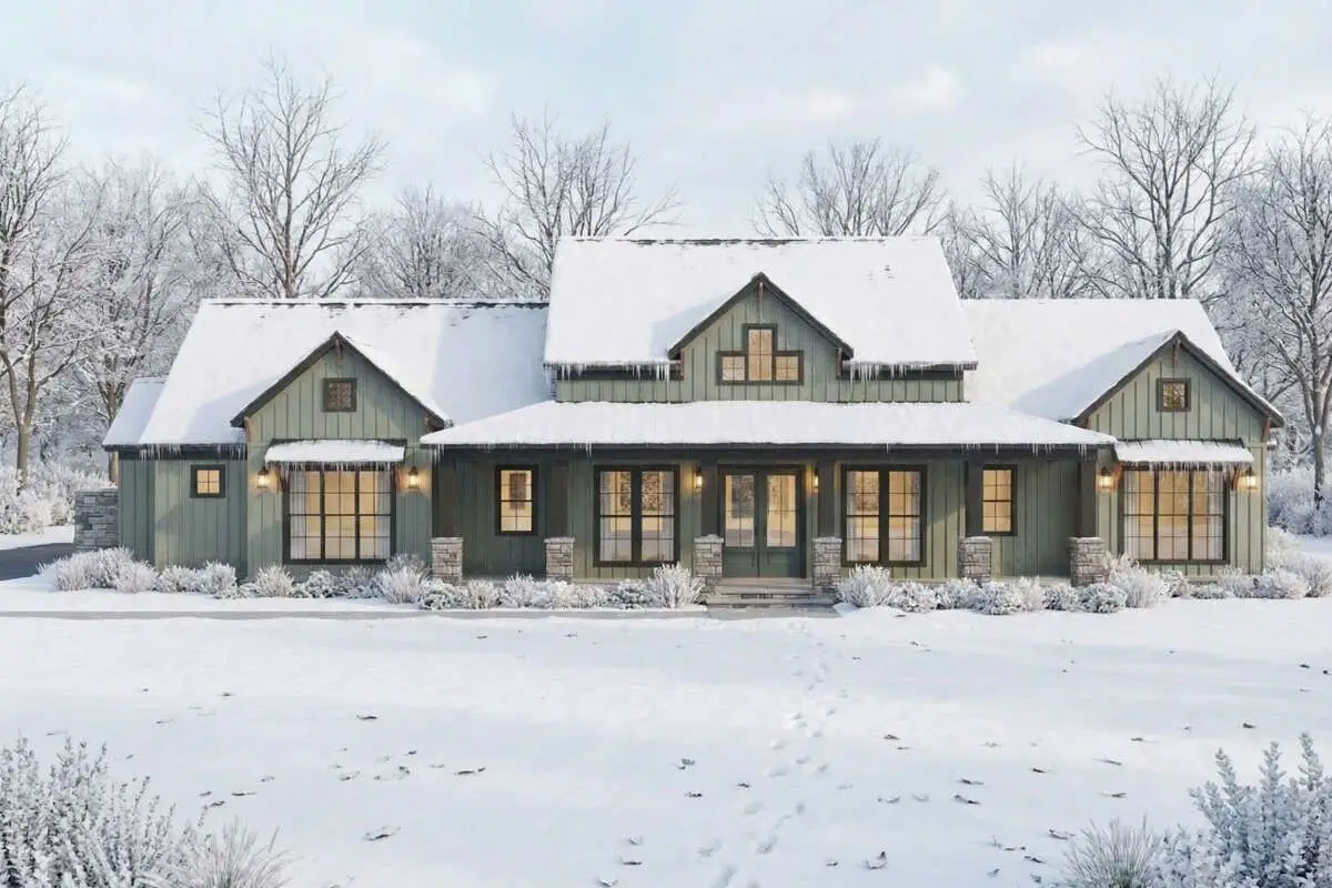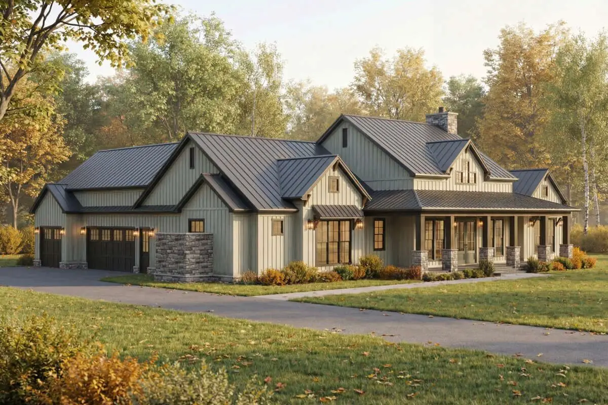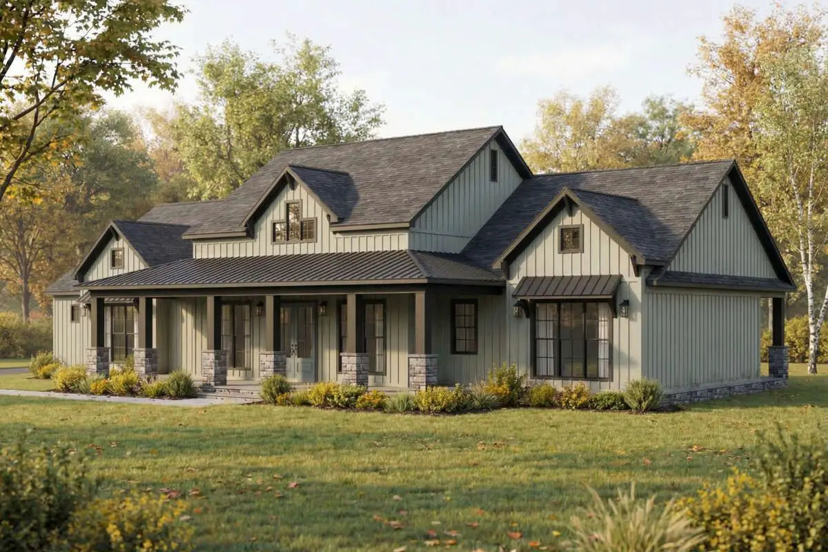 Typical U.S. residential construction costs in 2025 for a home of this size with modern farmhouse detailing range from about $170 to $340 per square foot, influenced by region, materials, labor availability, finish quality, and site conditions. Based on that range, building this ~2,692 sq ft home could cost approximately $458,000 to $915,000 USD before accounting for land purchase, site preparation, permits, utilities, and landscaping.