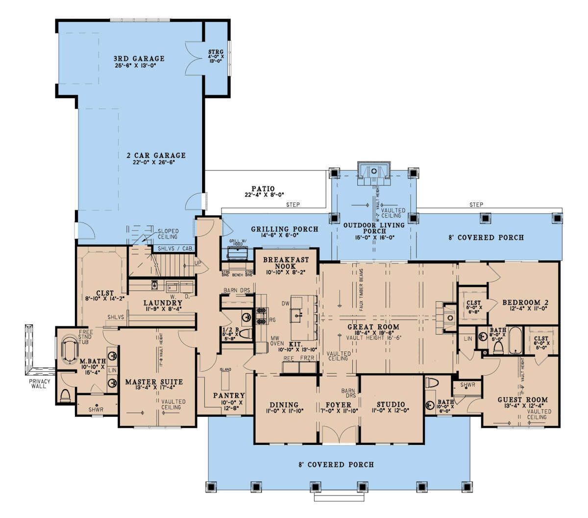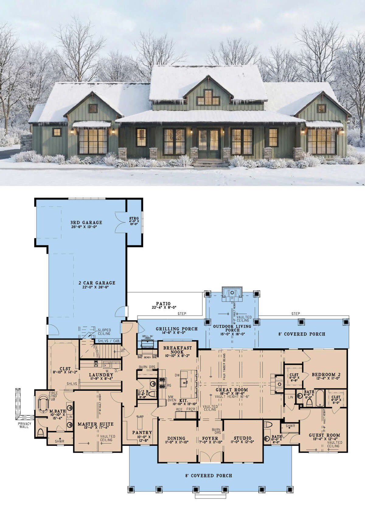 This modern farmhouse plan delivers approximately 2,692 sq ft of thoughtfully arranged living space tailored for everyday comfort, functional flow, and relaxed entertaining.