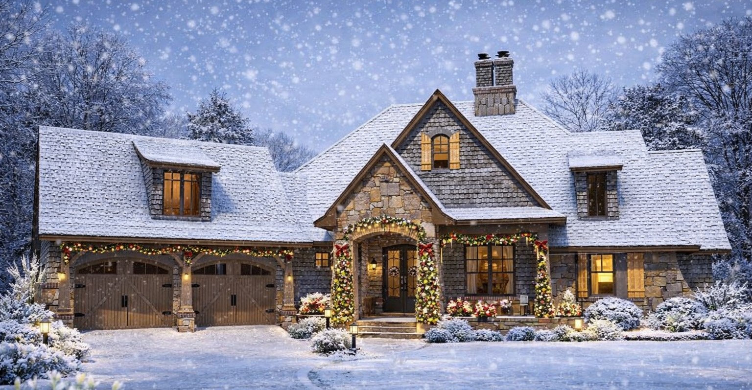 This mountain home plan offers approximately 2,482 sq ft of beautifully crafted living space that combines rustic mountain character with modern functional design. The layout includes 4 bedrooms, 3 full bathrooms + 1 half bath, and an attached 2-car garage (~695 sq ft).