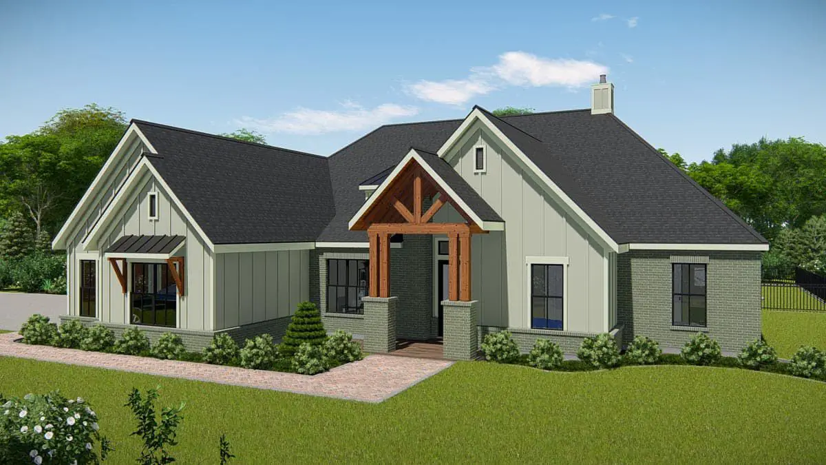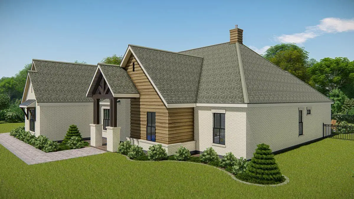 Outdoor living elements are integral to this design. The covered front porch expands the home’s usable footprint and invites relaxed outdoor seating, casual morning coffee, or intimate conversation. A rear patio or porch (if added) can serve as a natural extension of the living room, ideal for alfresco dining, evening gatherings, or simply enjoying your landscape. These outdoor connections enhance the home’s overall livability and support a lifestyle that embraces indoor-outdoor flow.