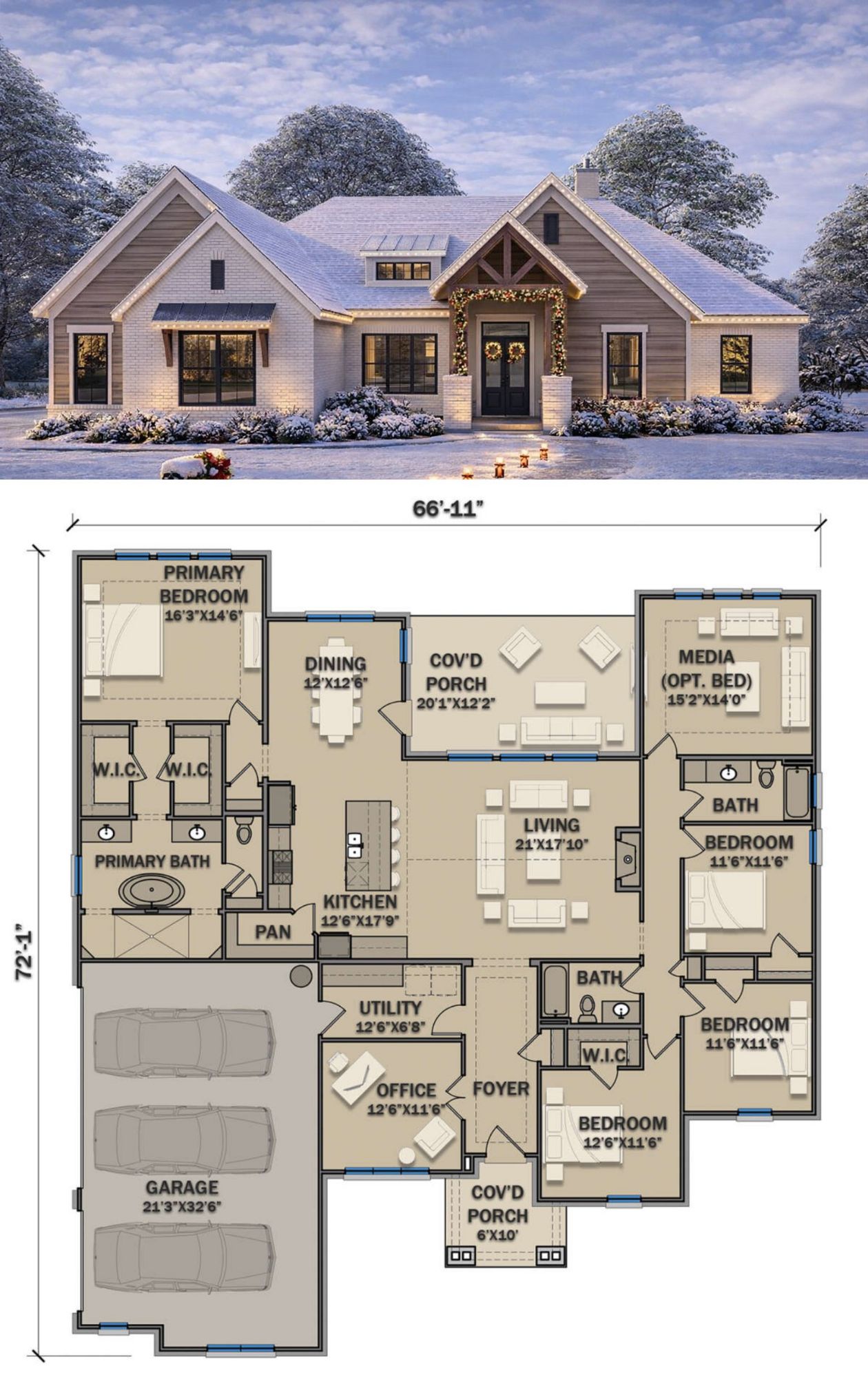 This Craftsman-style home offers approximately 2,812 sq ft of thoughtfully arranged living space that blends timeless architectural charm with flexible modern functionality. The layout includes 4 to 5 bedrooms (with one room easily used as an office, media room, or bonus space), 3 full bathrooms, and an attached 3-car garage.