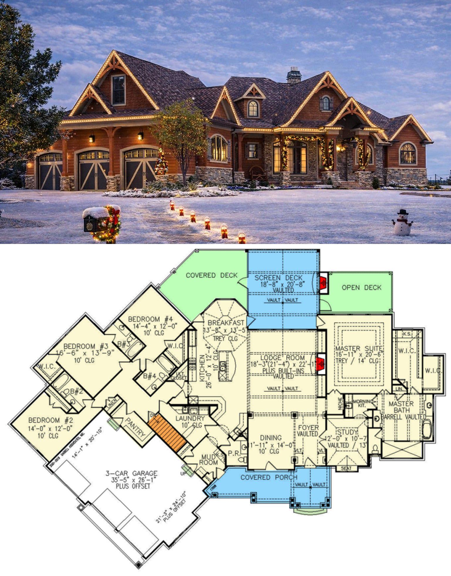 With striking architectural elements like elegant ceiling treatments, a dramatic master bath barrel vault, and generous outdoor porch areas, this plan delivers a comfortable and impressive home ideal for everyday family life and entertaining alike.