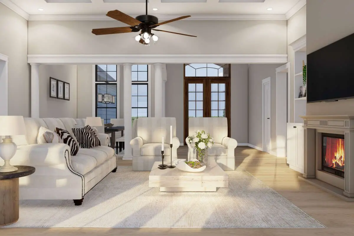 Inside, the floor plan emphasizes smooth circulation between rooms without feeling too open or too segmented. Lawn-to-living connectivity comes from thoughtful placement of common rooms at the core of the home, with bedrooms placed strategically for both privacy and convenience.