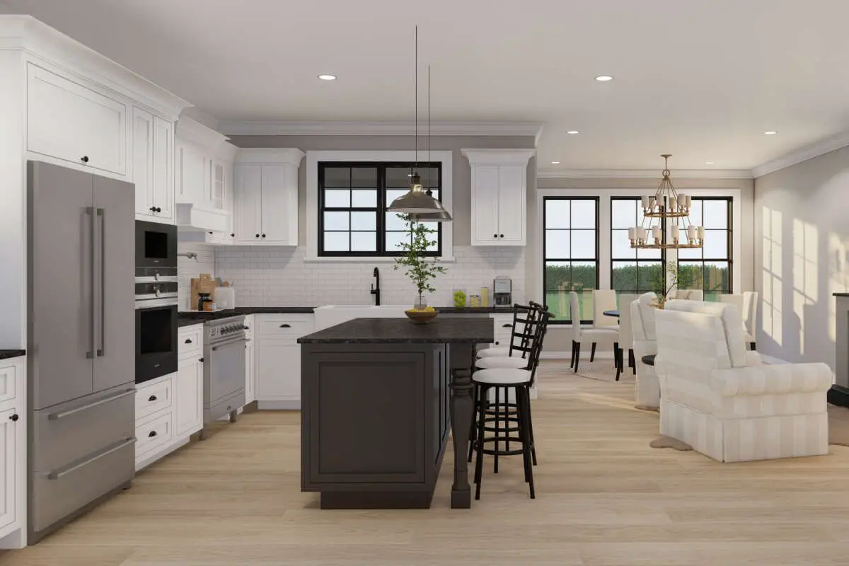 The great room provides a central gathering place for family life. With easy access from the kitchen and views out the rear of the home, it’s light, inviting, and ideally situated for hosting guests or relaxing after a long day.