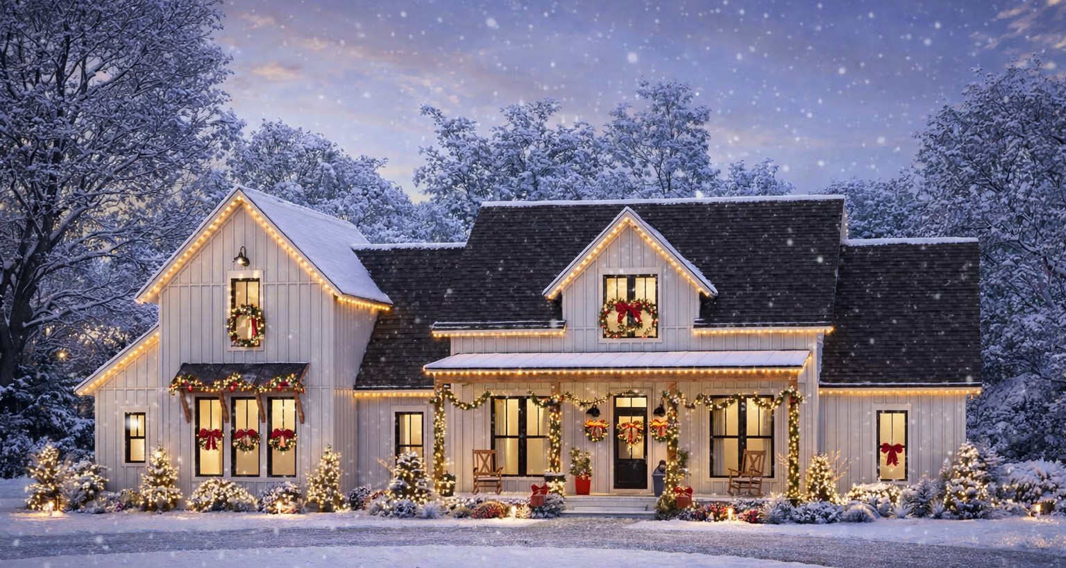 From the exterior, this home presents classic modern farmhouse character with balanced rooflines, copious windows, and a welcoming covered front porch that enhances both curb appeal and everyday outdoor enjoyment.