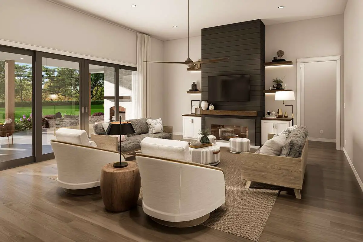 The great room serves as the heart of the home, providing a spacious area for gatherings, entertainment, and everyday living. With abundant natural light flowing through carefully positioned windows, it feels bright and inviting year-round.