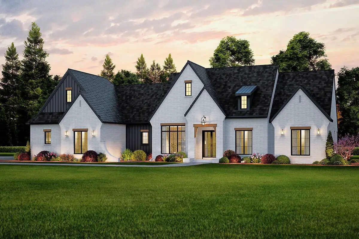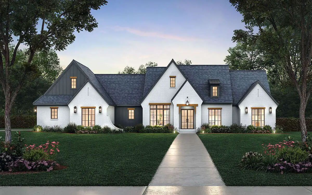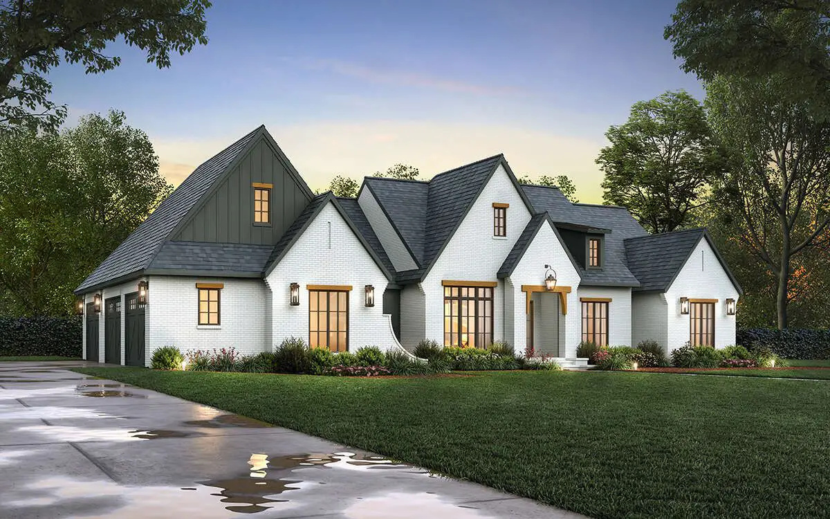 The combination of architectural shapes, subtle detailing, and generous covered porches gives this home a refined look that pairs beautifully with both rural and suburban settings. 1