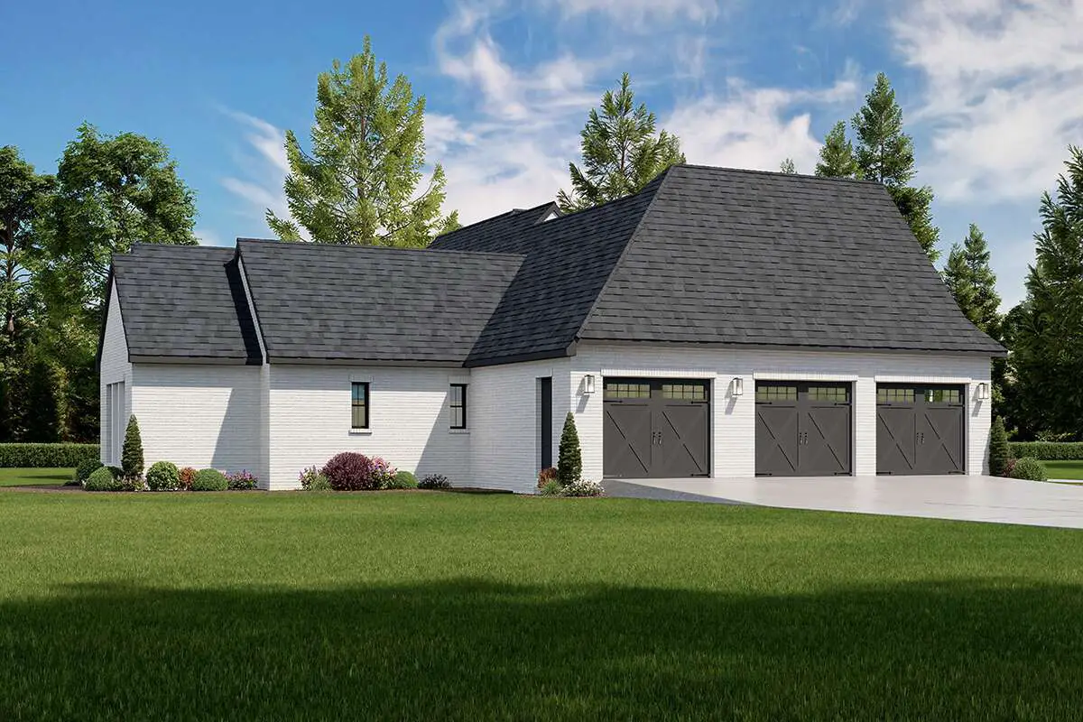 A three-car side-entry garage offers plenty of space for vehicles, tools, and storage without dominating the front elevation. Its placement helps preserve the home’s curb appeal while giving practical access to the interior.