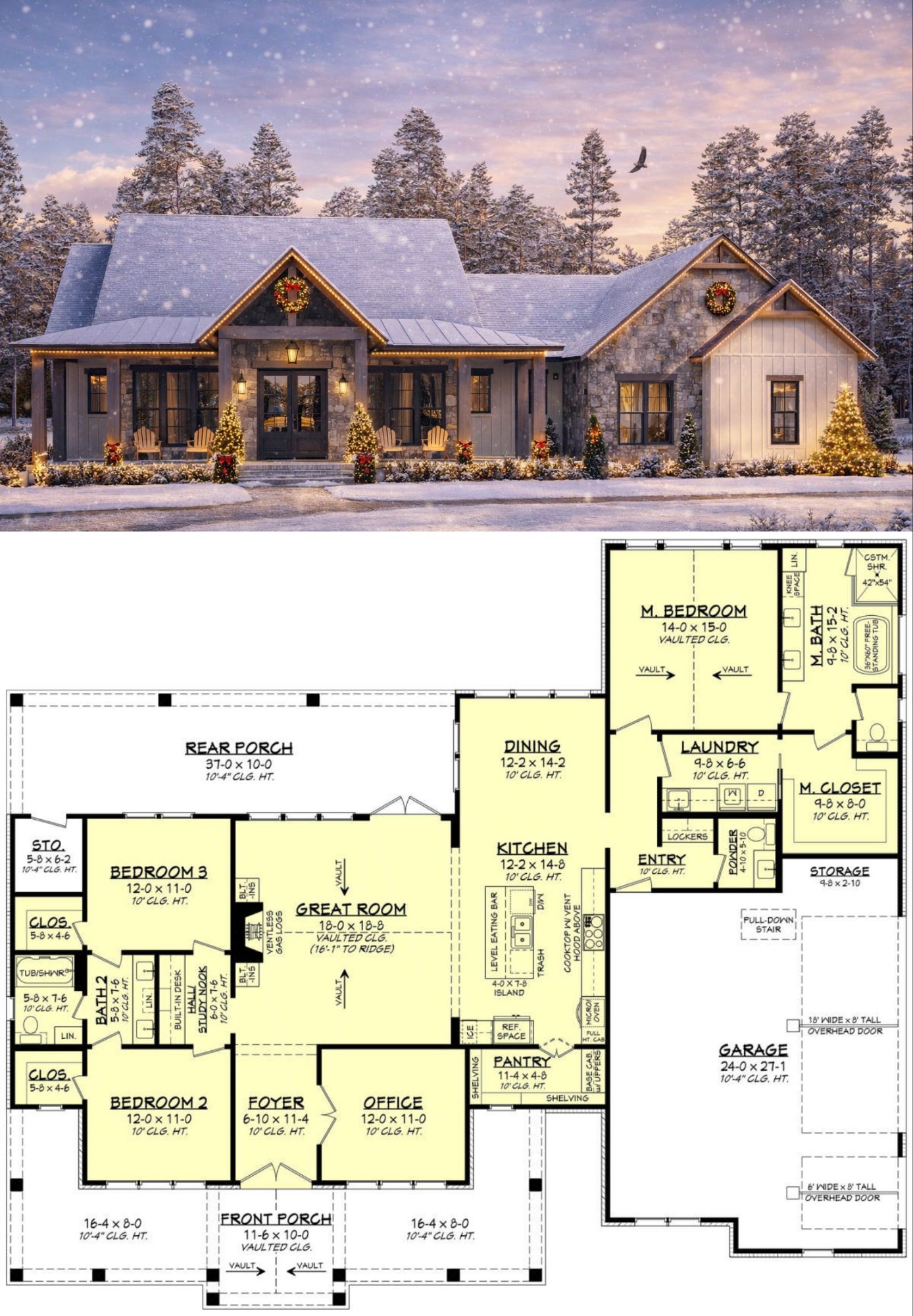 This modern farmhouse design offers about 2,195 square feet of comfortable, thoughtfully laid-out living space with 3 bedrooms, 2 full bathrooms, and 1 half bathroom.