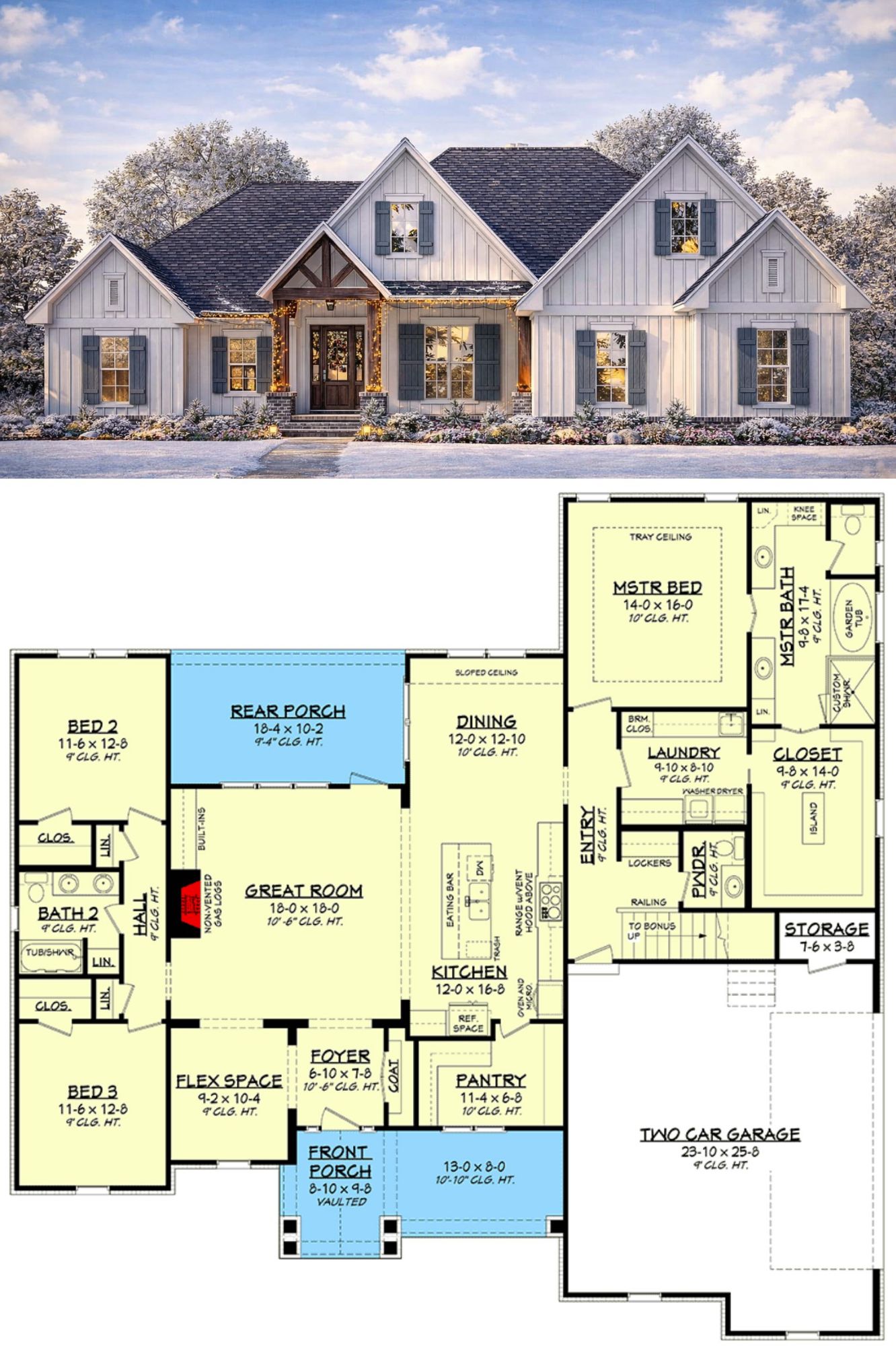 This plan is ideal for homeowners who value a sense of openness and architectural character. The volume ceilings make everyday living spaces feel larger and brighter, while the flexible bedroom count and optional bonus space add versatility for growing families or evolving needs. The functional one-level layout with thoughtful porch areas supports both relaxed living and entertaining with ease. 21
