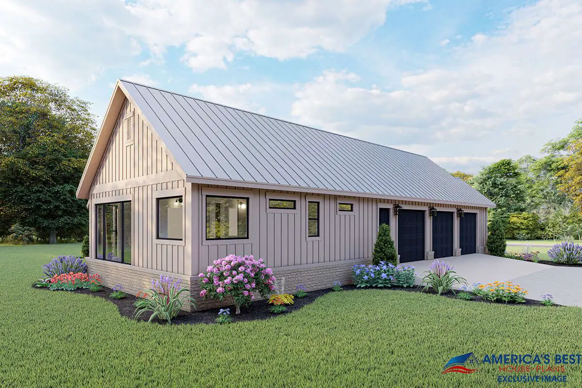 A roomy 3-car side-entry garage (~948 sq ft) provides ample room for vehicles, storage, and workspace without dominating the streetscape. 2