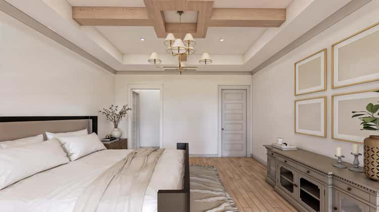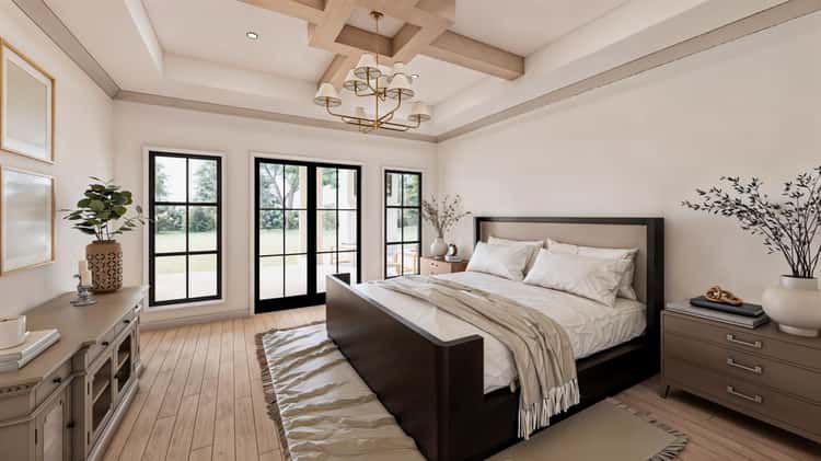 The **primary suite** is designed for comfort and privacy. It typically includes a spacious bedroom with vaulted ceilings or tray detail, a luxurious ensuite bathroom, and generous walk-in closets.