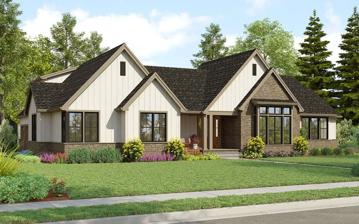 The façade typically features a mix of materials and textures that give depth and visual interest without feeling fussy or overly ornate. The overall look is elegant yet inviting, perfect for a wide range of neighborhood settings. 1