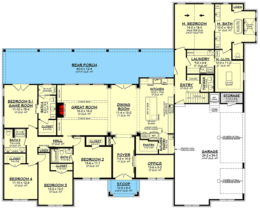The split bedroom arrangement enhances privacy, while generous windows throughout bring in natural light that makes the interior feel bright and welcoming. Practical touches like the mudroom, laundry room, and office help keep daily routines organized and efficient. Outdoor spaces further extend usable living areas into the fresh air, making this plan ideal for both everyday living and special gatherings.