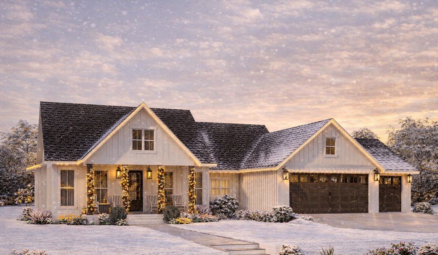 It features 3 bedrooms, 2 full bathrooms, and 1 half bathroom, all on one convenient level. A standout feature of this plan is the **3-car garage**, which provides generous parking and storage space while maintaining a striking yet simple exterior profile.