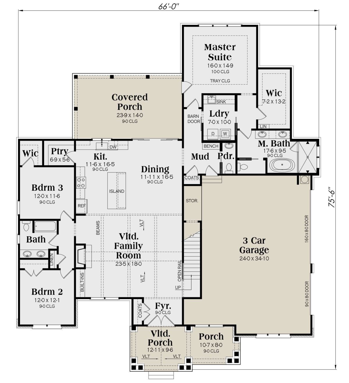 - Ceiling Heights: 9′ main level