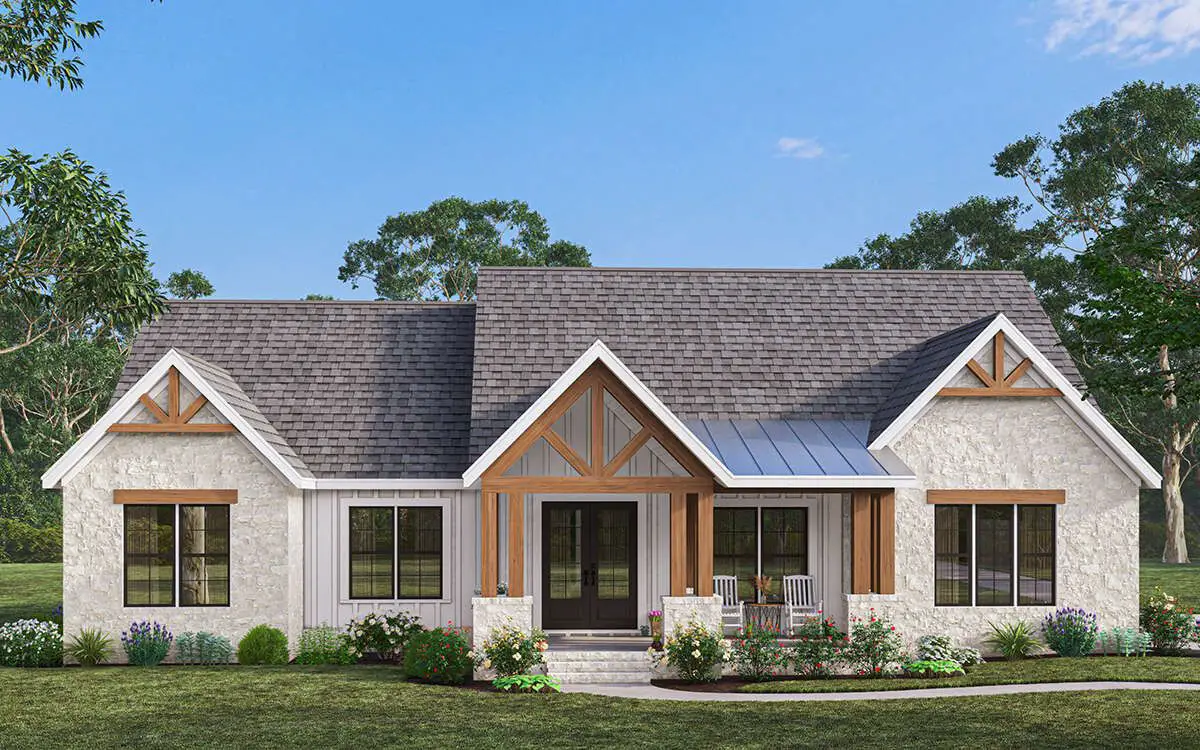 This modern farmhouse design packs smart layout, timeless curb appeal, and flexible living into a comfortable 2,287 square-foot footprint.