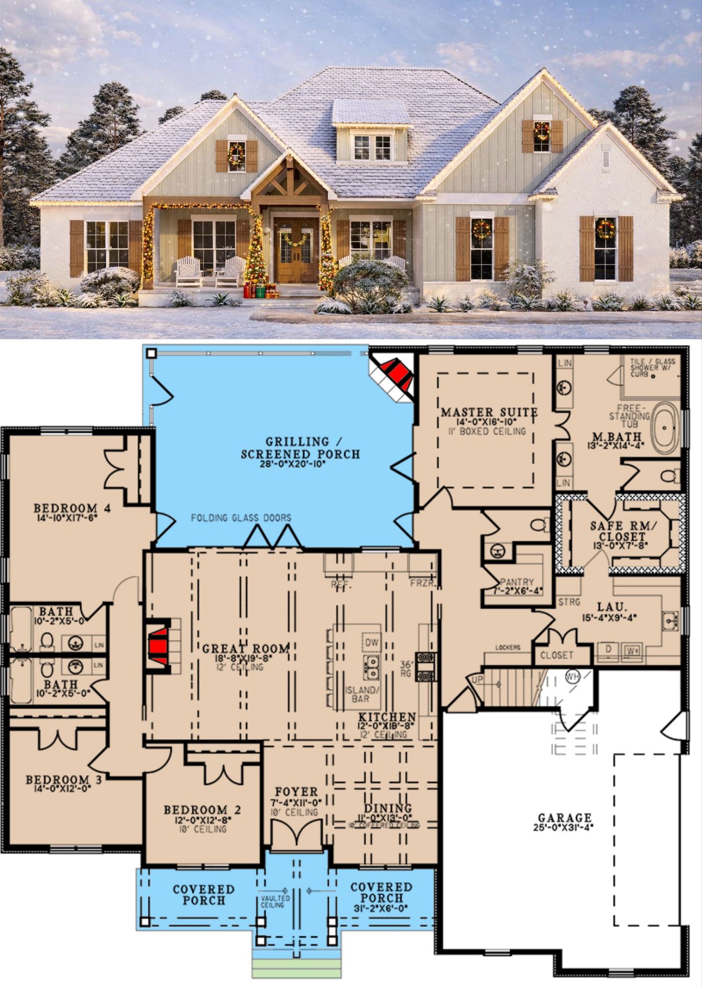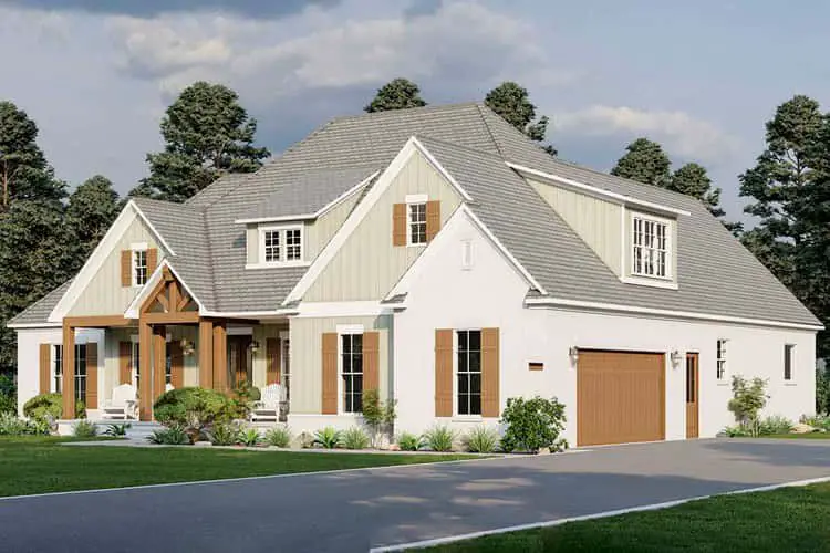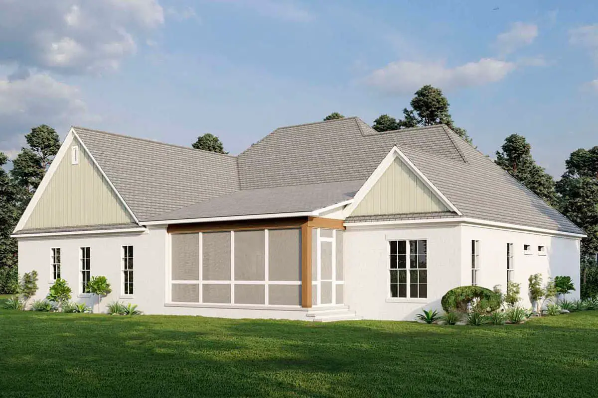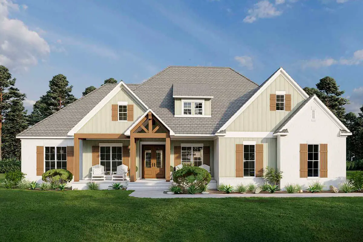 This plan delivers classic country charm with thoughtful modern living features, making it a compelling choice for families who want both everyday functionality and future flexibility in one home
