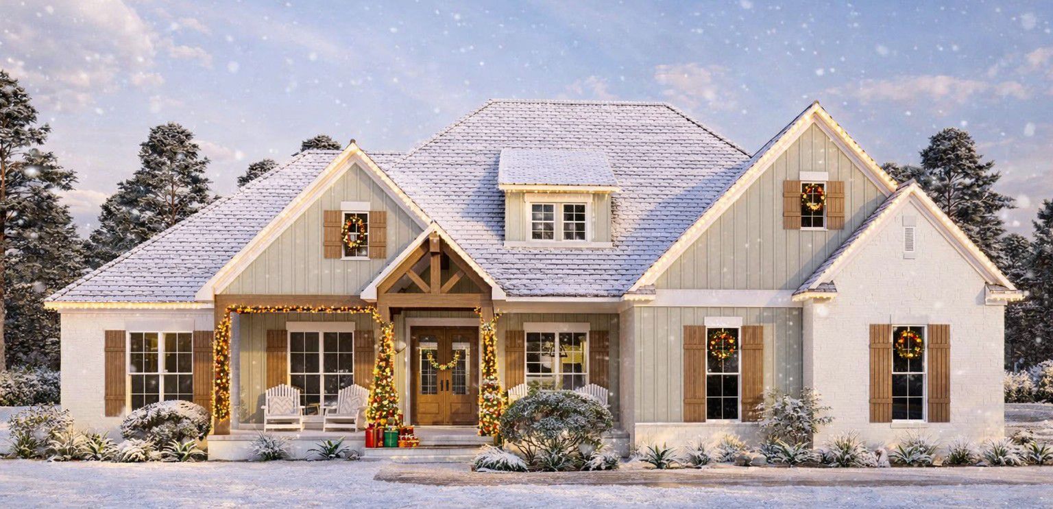With about 2,638 square feet of heated space on the main level, four bedrooms, 4.5 baths, and an optionally finished bonus room above the garage, it’s a flexible design that works for growing families, frequent guests, or anyone who loves that welcoming country aesthetic.