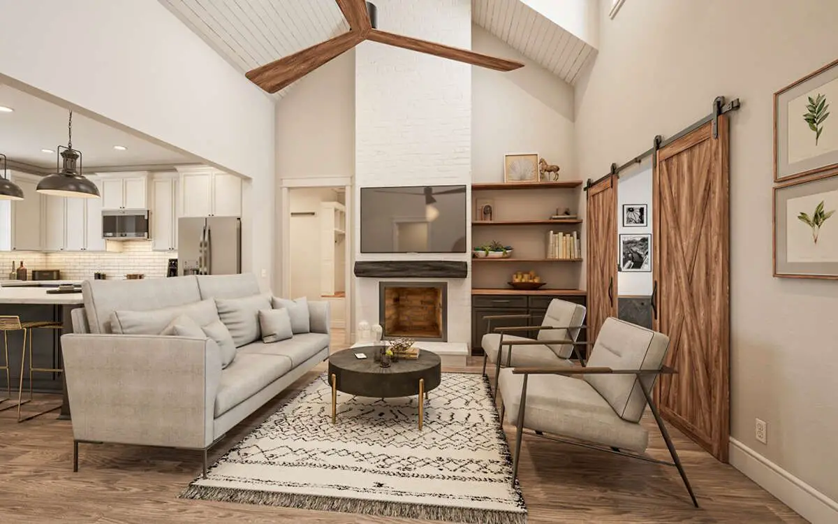 At about 1,819 square feet, it includes three bedrooms, two full bathrooms, one half bath, and flexible garage options—all wrapped in a welcoming farmhouse aesthetic.