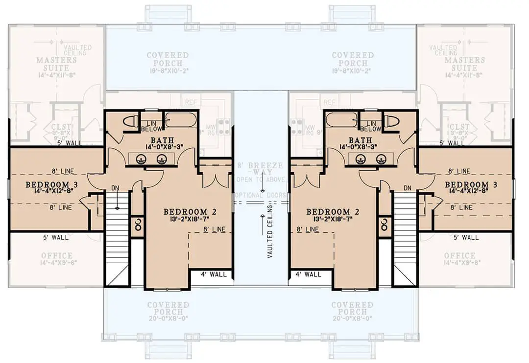 This duplex plan blends rustic charm with everyday functionality, offering a flexible solution for families, investors, or anyone interested in dual living spaces with classic porch appeal. 19