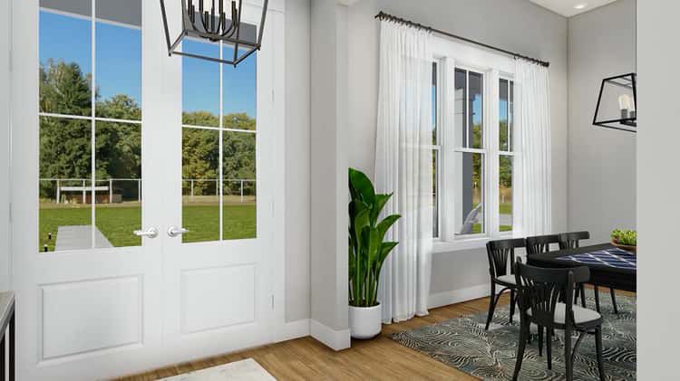 This layout doesn’t forget the “real life” spaces. A mudroom helps keep bags, shoes, and daily clutter from drifting into the main living area. A clever pocket-door connection between the powder room and mudroom adds convenience and keeps traffic flowing smoothly, especially when outdoor time and indoor time overlap (which is basically always).