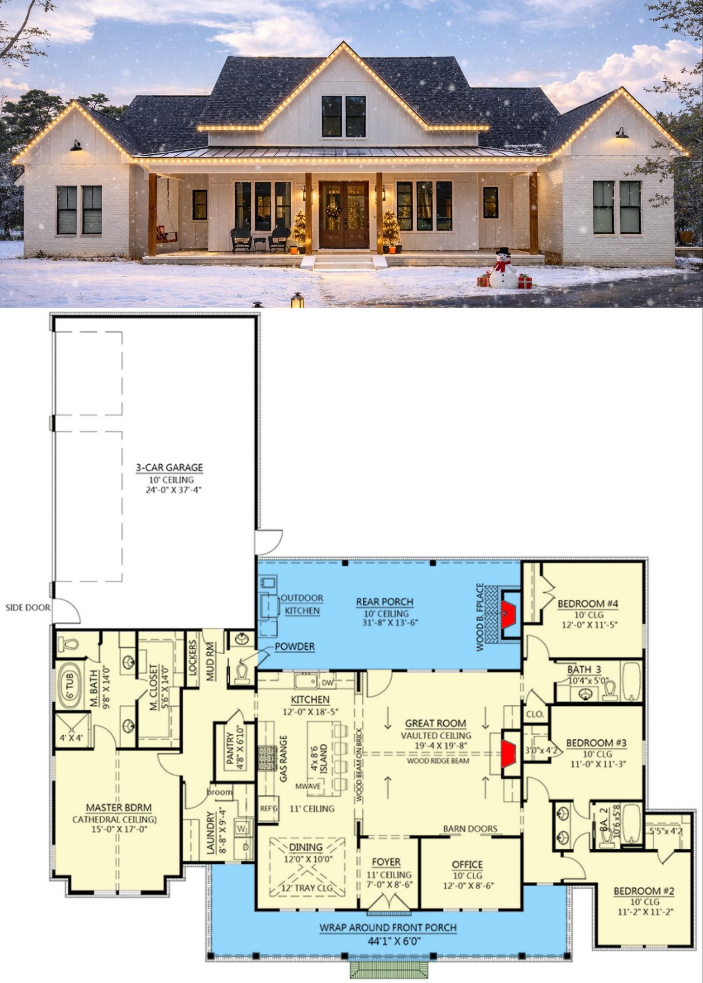 The overall footprint is generous without being overwhelming, and the flow is the real star. You get open gathering spaces in the middle, quiet bedrooms on opposite wings, and porches that feel like real outdoor rooms instead of decorative afterthoughts.
