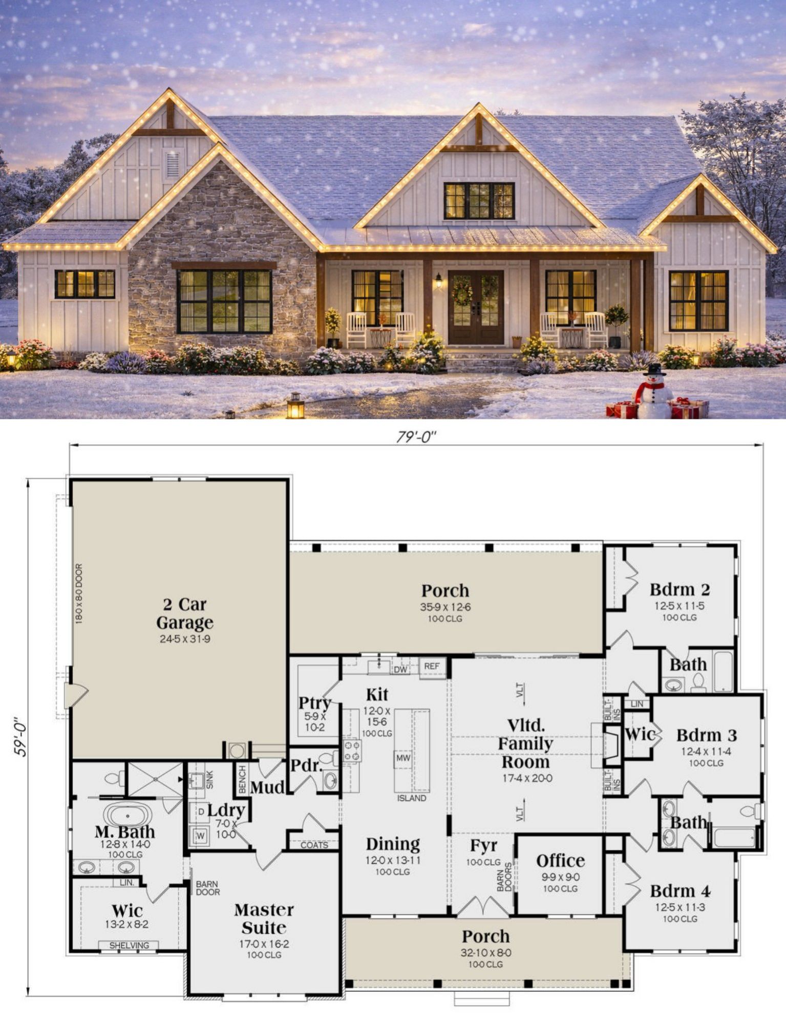 Whether you’re hosting dinner, managing daily routines, or savoring quiet moments on the porch, this design accommodates versatile family living and entertaining while keeping a grounded, welcoming farmhouse character. 11