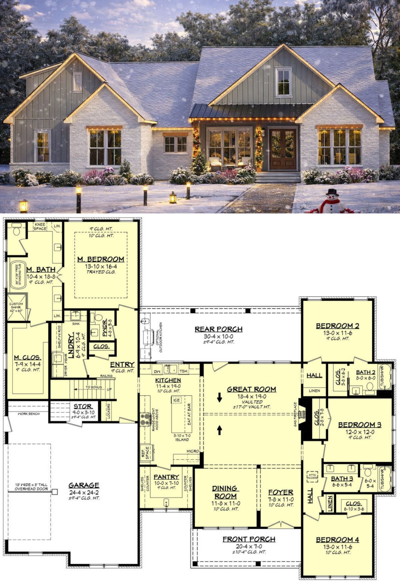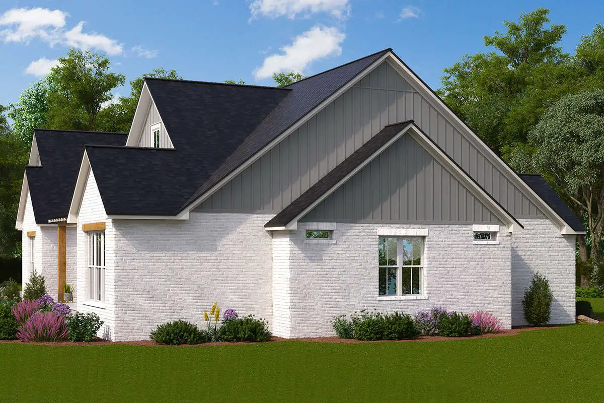 This modern farmhouse plan offers a balanced layout with timeless curb appeal and practical everyday living.