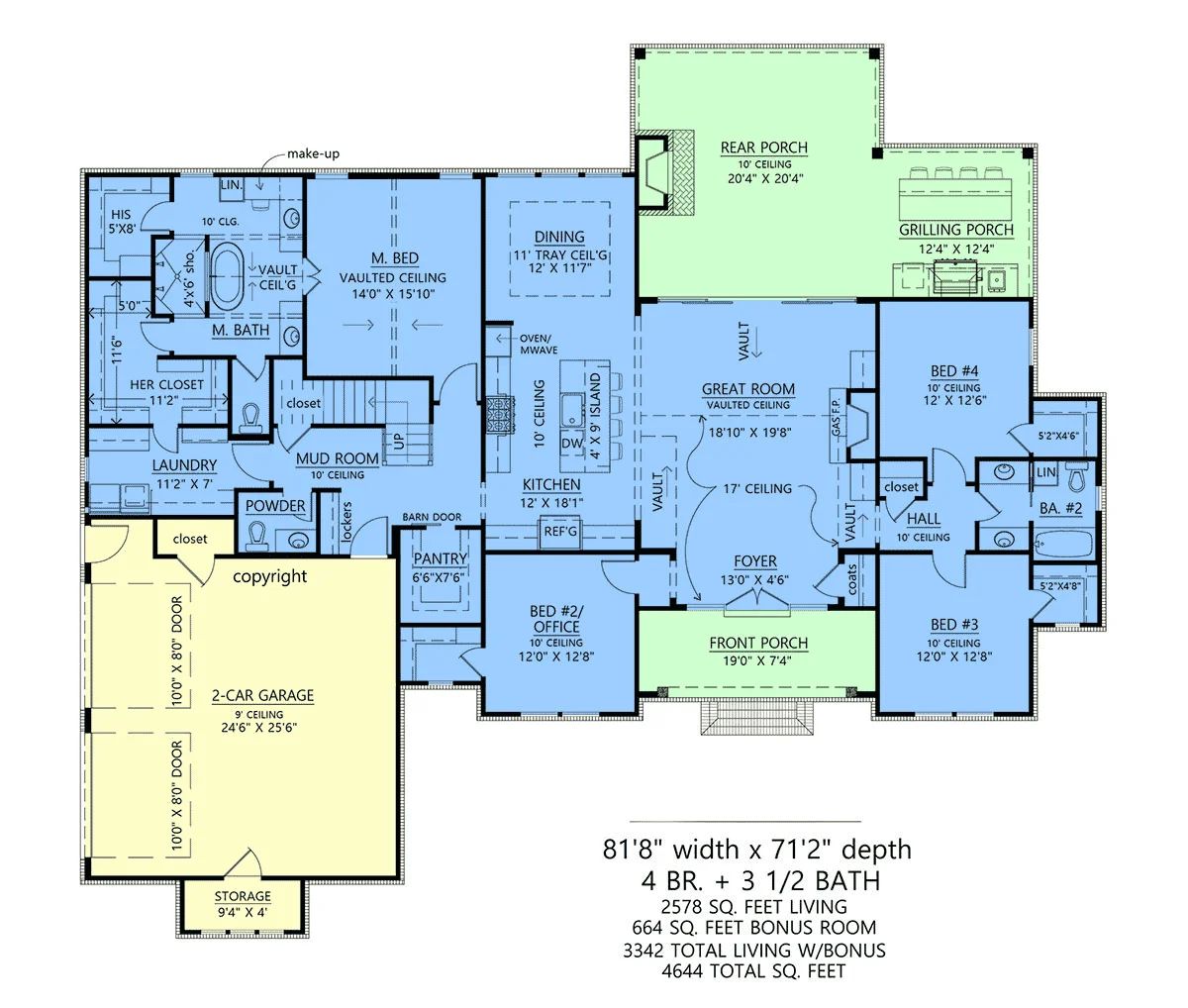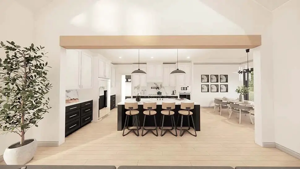 Plan 41481 excels at balancing open social spaces with private retreats. Family activities, cooking, and entertaining flow effortlessly in the open floor plan, while the owner’s suite and secondary bedrooms offer restful separation when needed. The bonus room adds future-ready flexibility for hobbies, play, or guests. 21