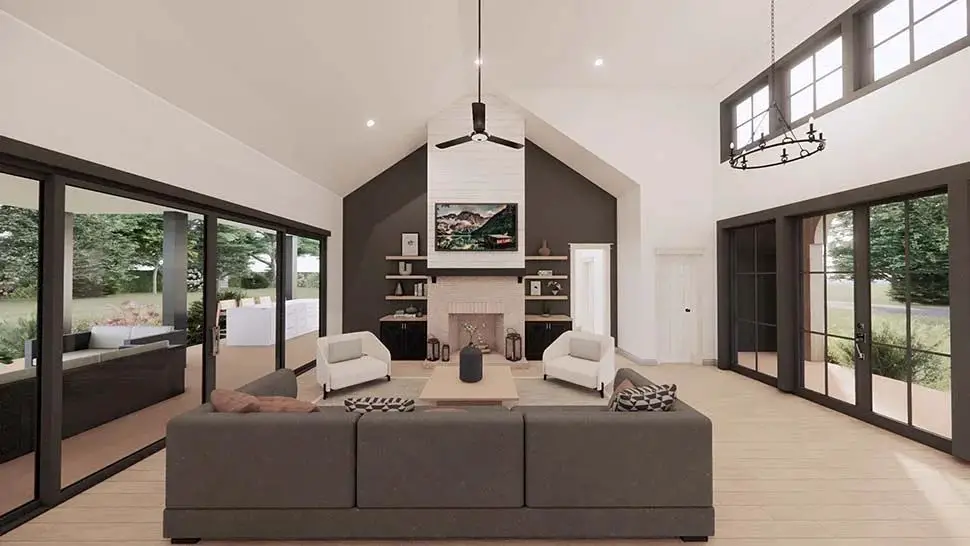 The great room often centers around a cozy fireplace, offering a gathering spot for family movie nights, relaxed weekends, or hosting guests.