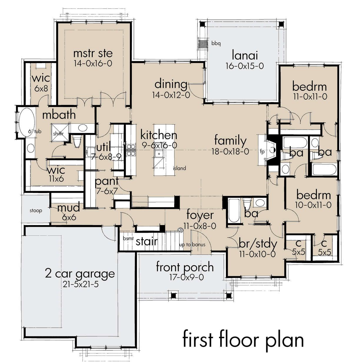 Many versions of this plan include bonus elements such as a study or flexible room that can serve as a home office, hobby space, or media room. A mudroom helps keep everyday clutter contained, while a dedicated laundry area supports organized household flow.