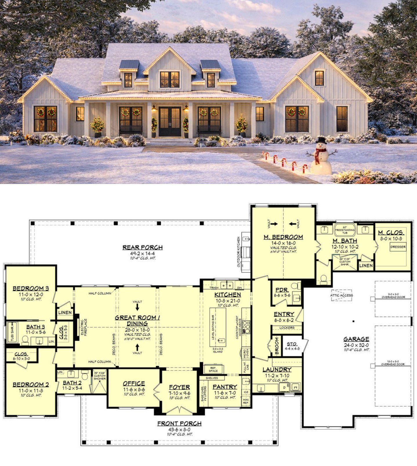 This modern farmhouse design delivers stylish curb appeal, smart living spaces, and plenty of room for family life.