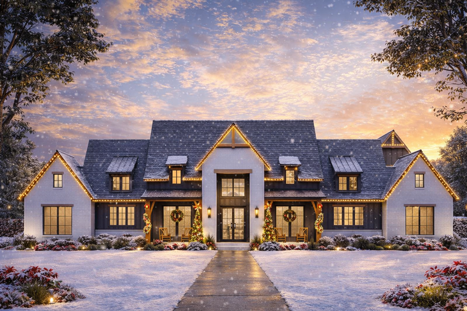 The design features a clean, modern farmhouse façade with crisp lines and welcoming porches totaling about 1,170 sq ft. Broad rooflines and thoughtful proportions give this home a strong street presence while maintaining timeless farmhouse charm.