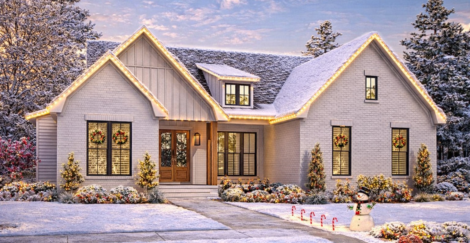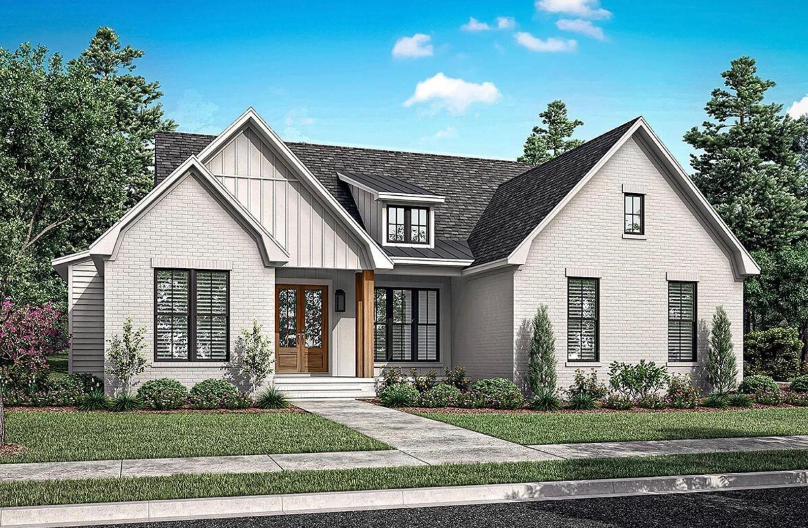 This charming transitional modern farmhouse plan packs thoughtful design and everyday functionality into a compact footprint of about 1,800 square feet.