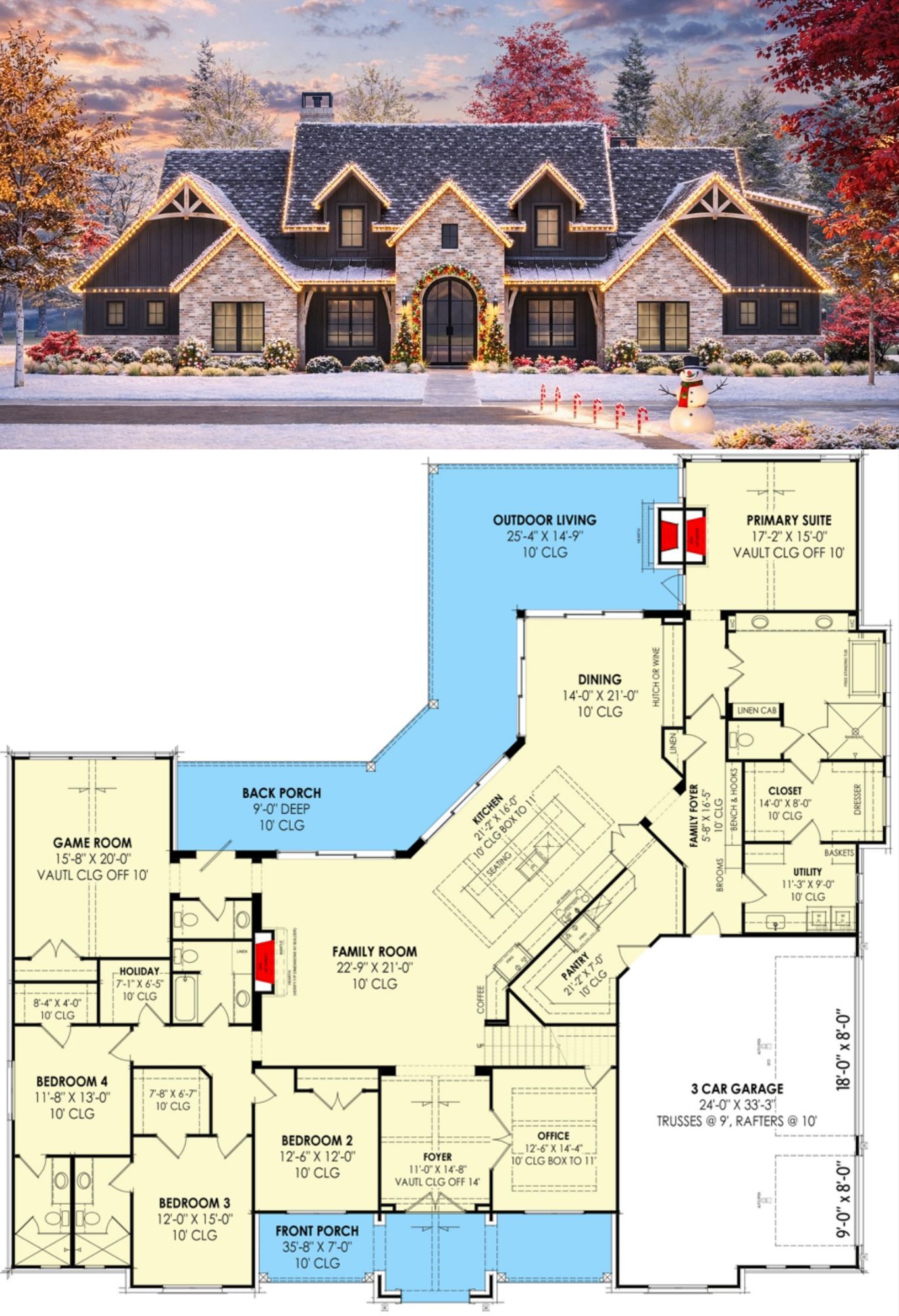 Flexible areas like the game room and bonus space add versatility—perfect for families who need multifunctional rooms for hobbies, play, or future expansion. Generous porch spaces frame your indoor spaces with outdoor living opportunities suitable for all seasons. 11