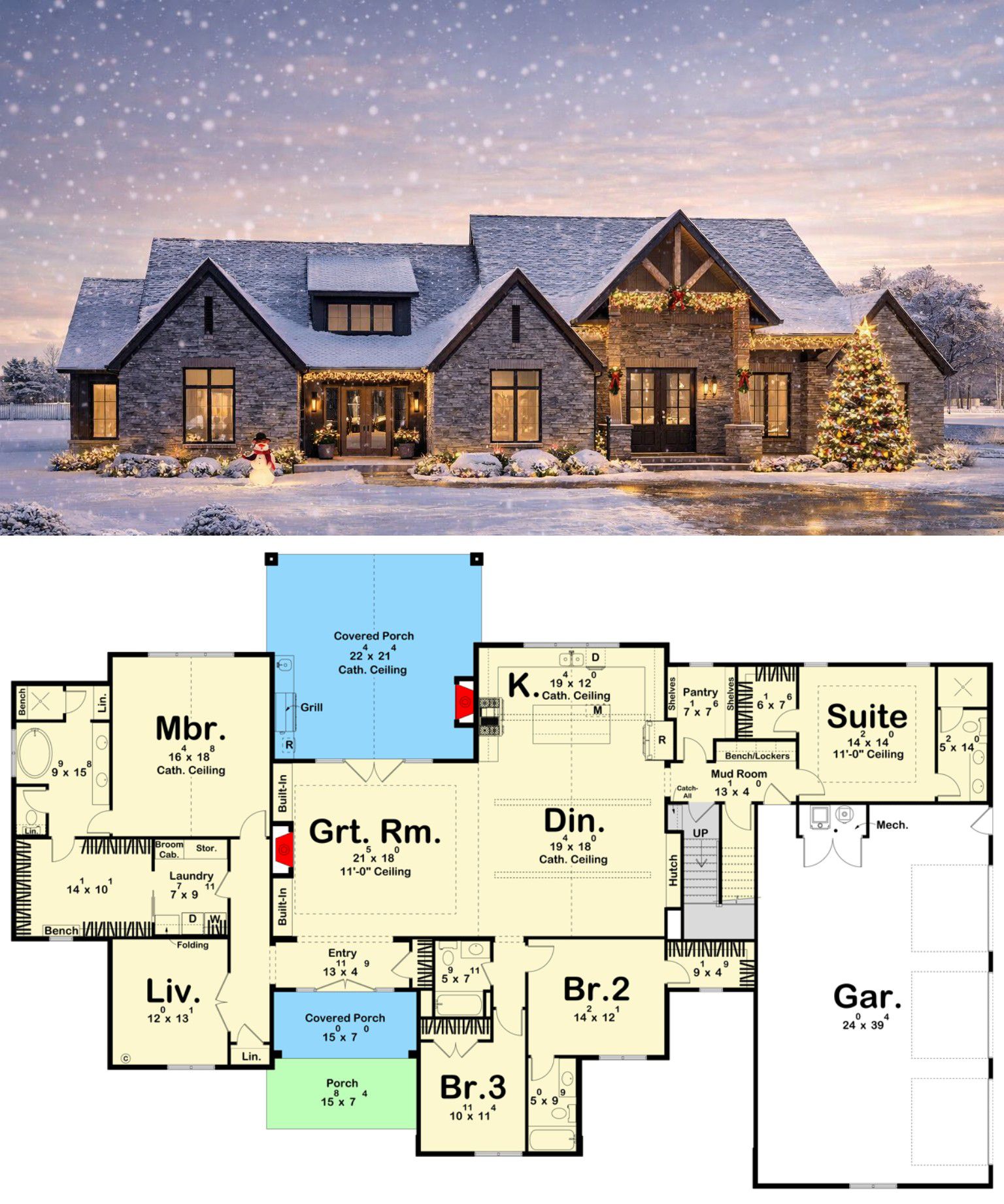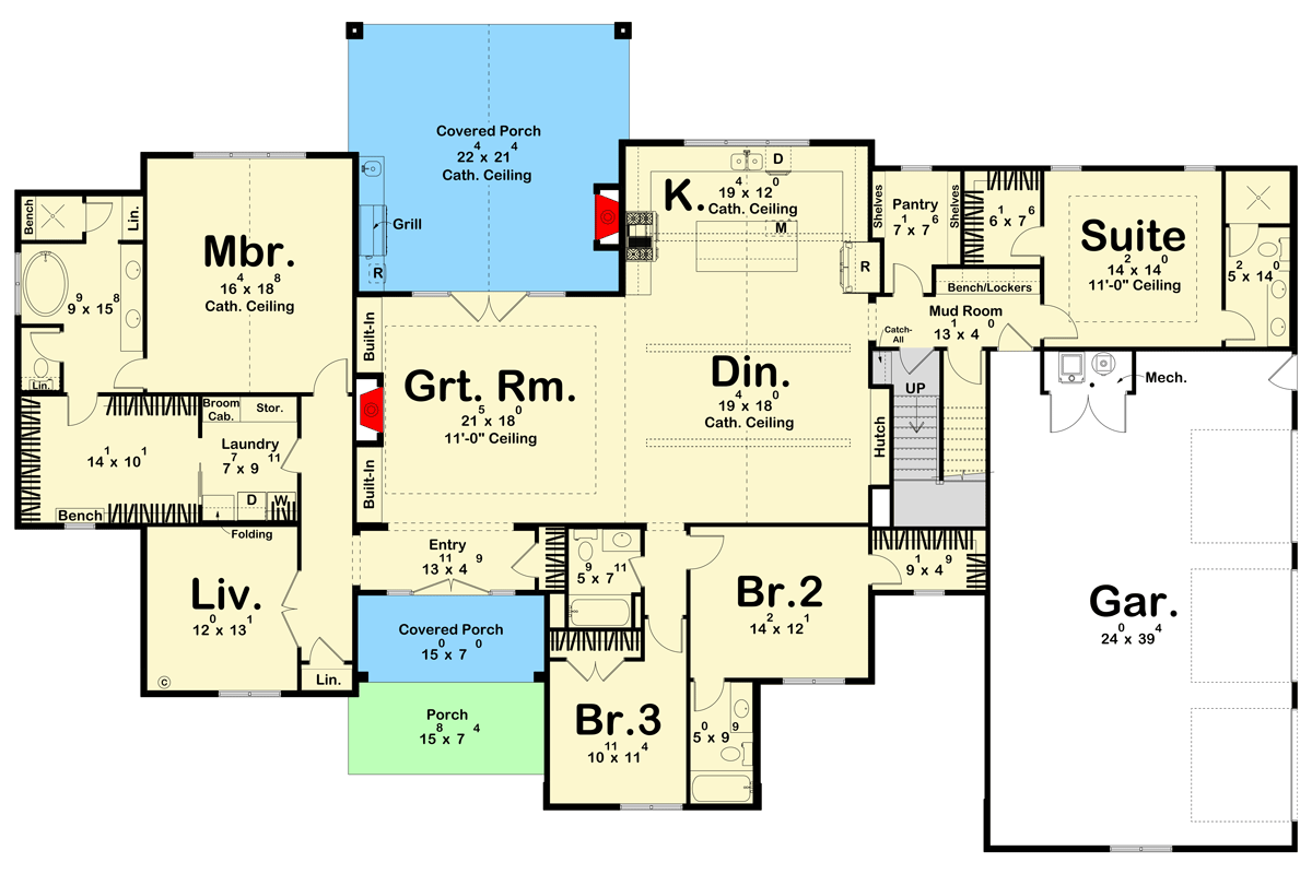 A covered rear porch expands the living space outdoors and includes a built-in outdoor kitchen—ideal for al fresco dining, grilling, and enjoying warm weather gatherings.